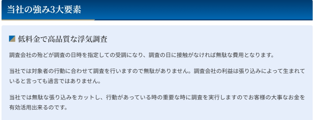 探偵会社の殆どが無駄な張り込み、無駄な調査を費やしている事で、高額な調査料になっているのが現状です。